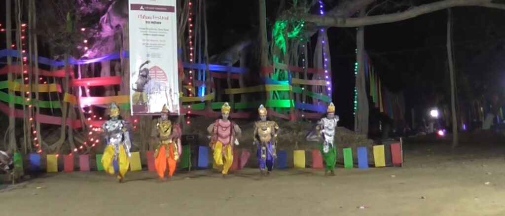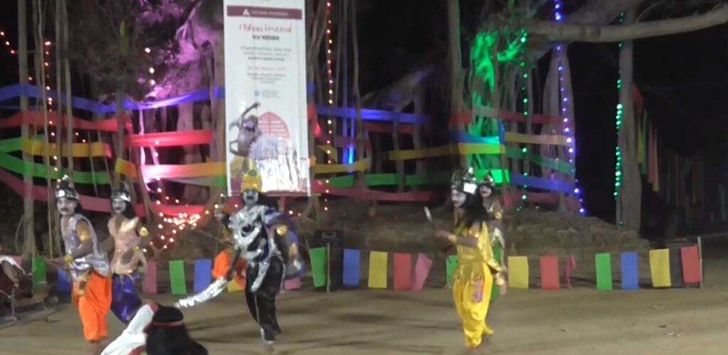 The performance narrates the birth of Krishna. It was foretold that Devaki’s eighth son would be born. When the child was born, the prison gates where Vasudeva and Devaki were held opened on their own, and the chains binding Vasudeva were broken. The guards fell into deep sleep, and Vasudeva carried the newborn child out. […] read more