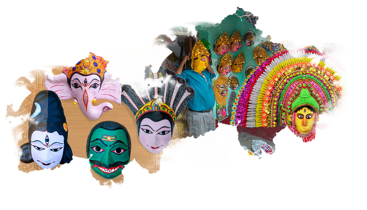 Chhau mask traditions of India represent a rich legacy of folk craftsmanship rooted in regional history and ritual. While Manbhum and Seraikela Chhau are known for their distinctive mask traditions, Mayurbhanj and Kharsawan Chhau are defined by powerful maskless forms, where intricate facial and body paintings replace masks to express character and emotion.